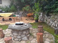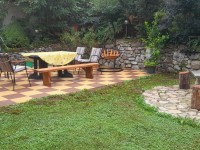 Az udvar parkosított, a fedett teraszon kerti étkező garnitúra biztosítja a kikapcsolódást. Kerti sütéshez kőgrill, szalonnasütéshez, bográcsozáshoz külön kialakított hely várja az érkezőket. A nyaralóhoz külön térítés ellenében igényelhető 4 kerékpár is.