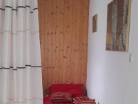 Alsó szinten: fürdőszoba zuhanykabinnal, nagy méretű konyha teljes felszereltséggel, kerámia tűzhellyel, mikrohullámú sütővel, ebédlő bútorral, kihúzható asztallal. Félszoba kanapéval. Nagyszoba franciaággyal, bútorokkal, televízióval.